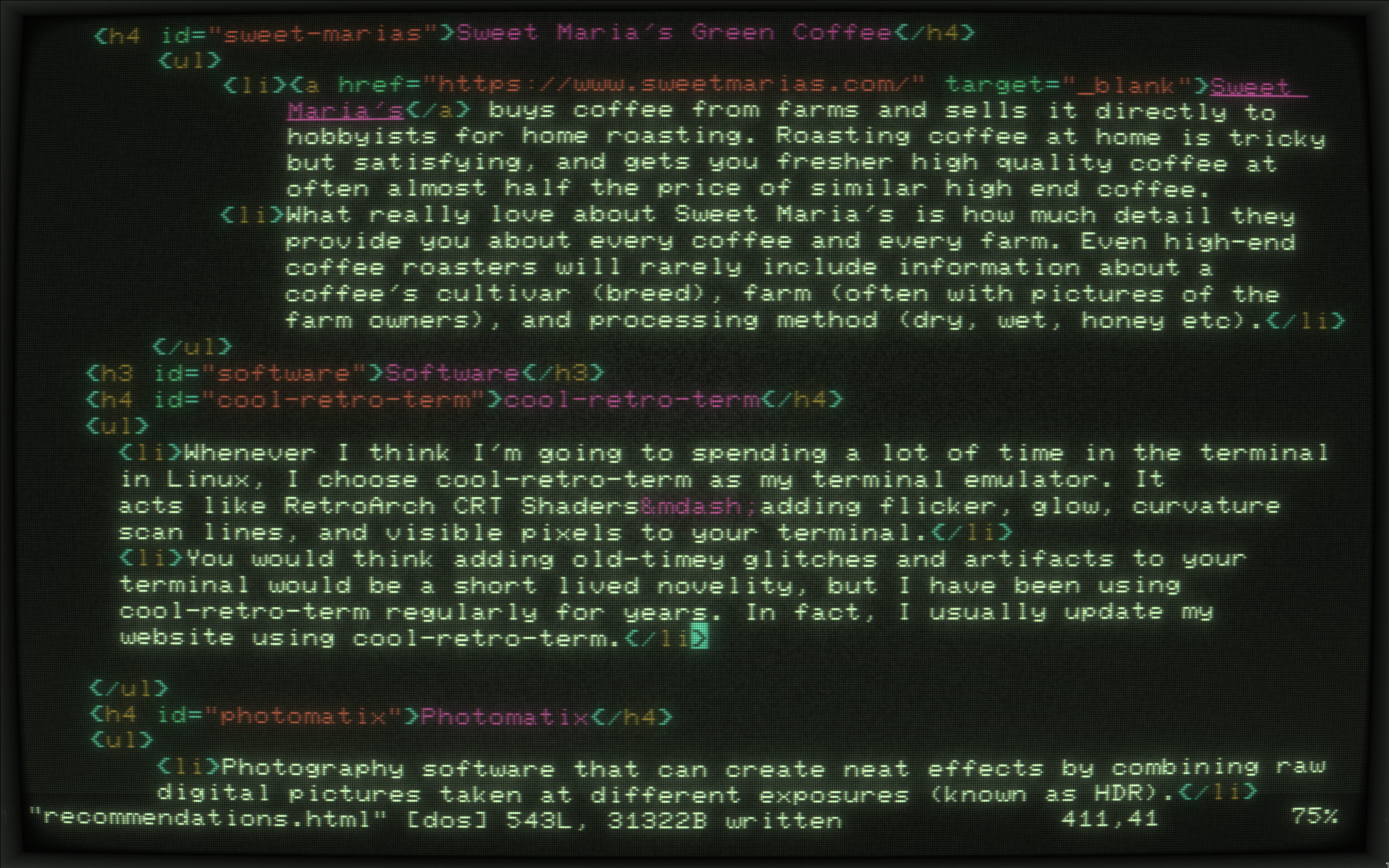 flicker, glow, curvature, scanlines, and visible pixels to your